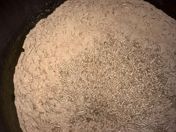 Auch bei hochwertigen Pellets ist es notwendig den Behälter regelmäßig komplett zu entleeren, um Feinanteilakkumulation zu vermeiden.