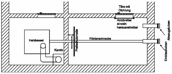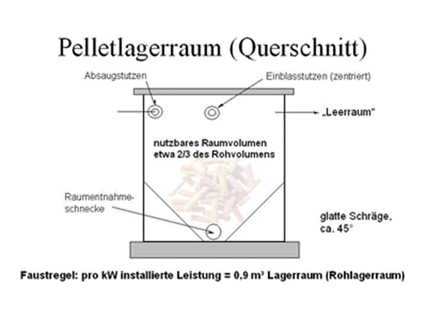 Beim Bau des Bunkers sollte beachtet werden, dass Holzpellets eine Schüttdichte von