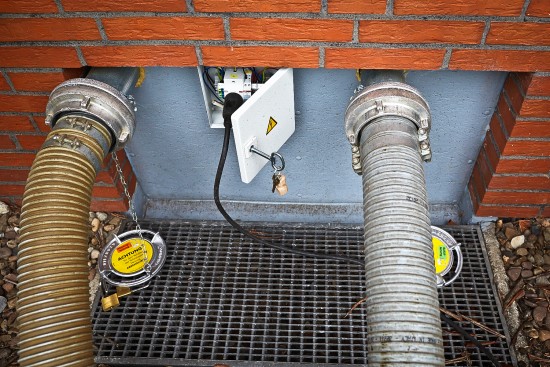 Bei massiven Bunkern müssen mind. 2 Stutzen (Storz A) vorhanden sein, ein Stutzen zum Einblasen und ein Stutzen zum Absaugen der Förderluft.
