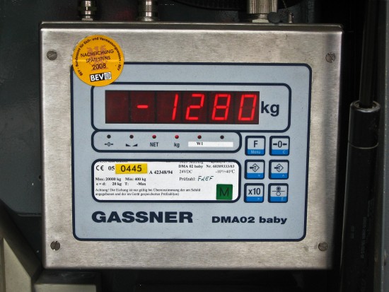 An der geeichten Wiegeeinrichtung des LKW kann die eingefüllte Menge direkt abgelesen werden und der Wiegebeleg gedruckt werden.