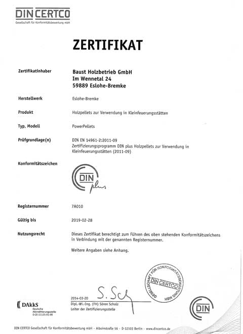 Die DINplus ist eine Produktionszertifizierung auf Grundlager der DIN EN ISO 17225-2.